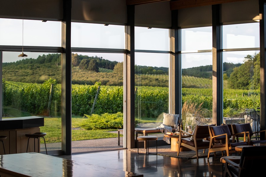 Blustone Vineyards, 780 N. Sylt Road, 231-256-0146. Voted as the #1 Red Hot Best Winery on the Leelanau Peninsula, Blustone’s tasting room features panoramic views, floor to ceiling windows, and a modern vibe plus an outdoor patio.