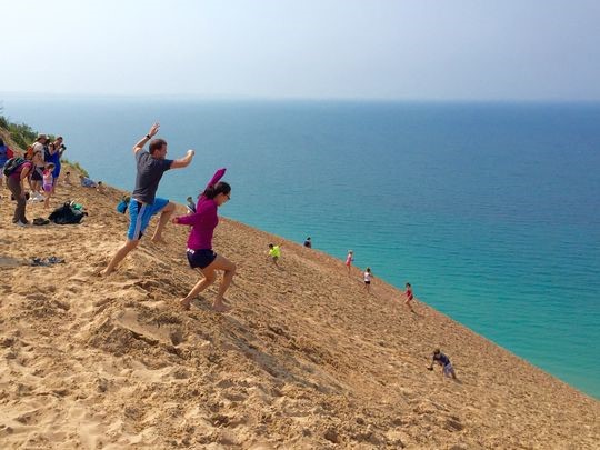 From the files of “it-seemed-like-a-good-idea-at-the-time”… an overly excited traffic reporter, Kim DeGiulio from Local 4 WDIV in Detroit, Michigan, took an unintentional tumble on camera during a run down an unidentified sand dune at Sleeping Bear Dunes and then put it out there for the world to see. DeGiulio was a good sport about it and, thankfully, she wasn’t hurt. Click here to watch.